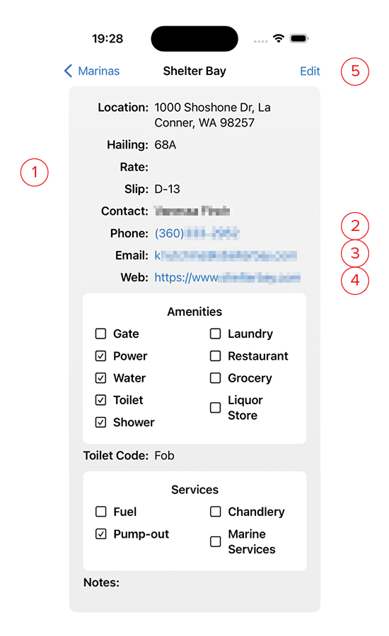 5. Edit: Clicking this button brings up an editor screen so you can make changes to the entered data. The edit screen is identical to the New Marina screen.
