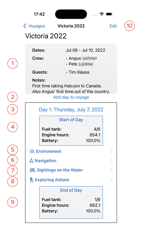 10. Edit: Clicking this allows you to change the overall trip information, crew, and description.
