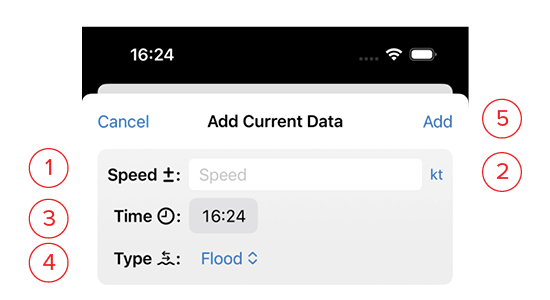 - Unit: If local current tables are published in a unit other than your your customary units, you may change that here by clicking on the blue unit indicator. Choose from the following in the drop-down list: m/s, k/h, mph, knots.