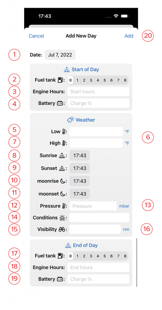20. Add: This button will turn blue once you’ve filled in the information. Clicking this saves it and returns you to the Voyage Details view..